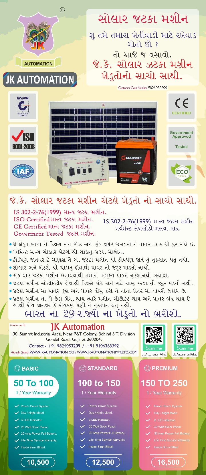 JK Automation is ISO 9001:2008 Certified Company We are Leading Manufacturers of Solar France Guard, ELCB+MCB, Phase Changer, Auto Starter, Auto Timer Switch, Electronics Power Sever Rectifier, Security System and All Type Automation Products manufacturing in Rajkot - Gujarat - India. Call: +91 98240 53209 Solar Fence Guard Manufacturing in Rajkot Gujarat India. Jatka Machine Manufacturing in Rajkot Gujarat India. Zatka Machine Manufacturing in Rajkot Gujarat India. Phase Changer Manufacturing in Rajkot Gujarat India. Power Saver ELCB+MCb Manufacturing in Rajkot Gujarat India. Power Saver Rectifier Manufacturing in Rajkot Gujarat India. ELCB+MCB Manufacturing in Rajkot Gujarat India. And All Type Automation Work in Rajkot Gujarat India. . For more info visit us at http://www.jkautomation.co/latest-update/happy-guru-purnima-/68?utm_source=facebookpage