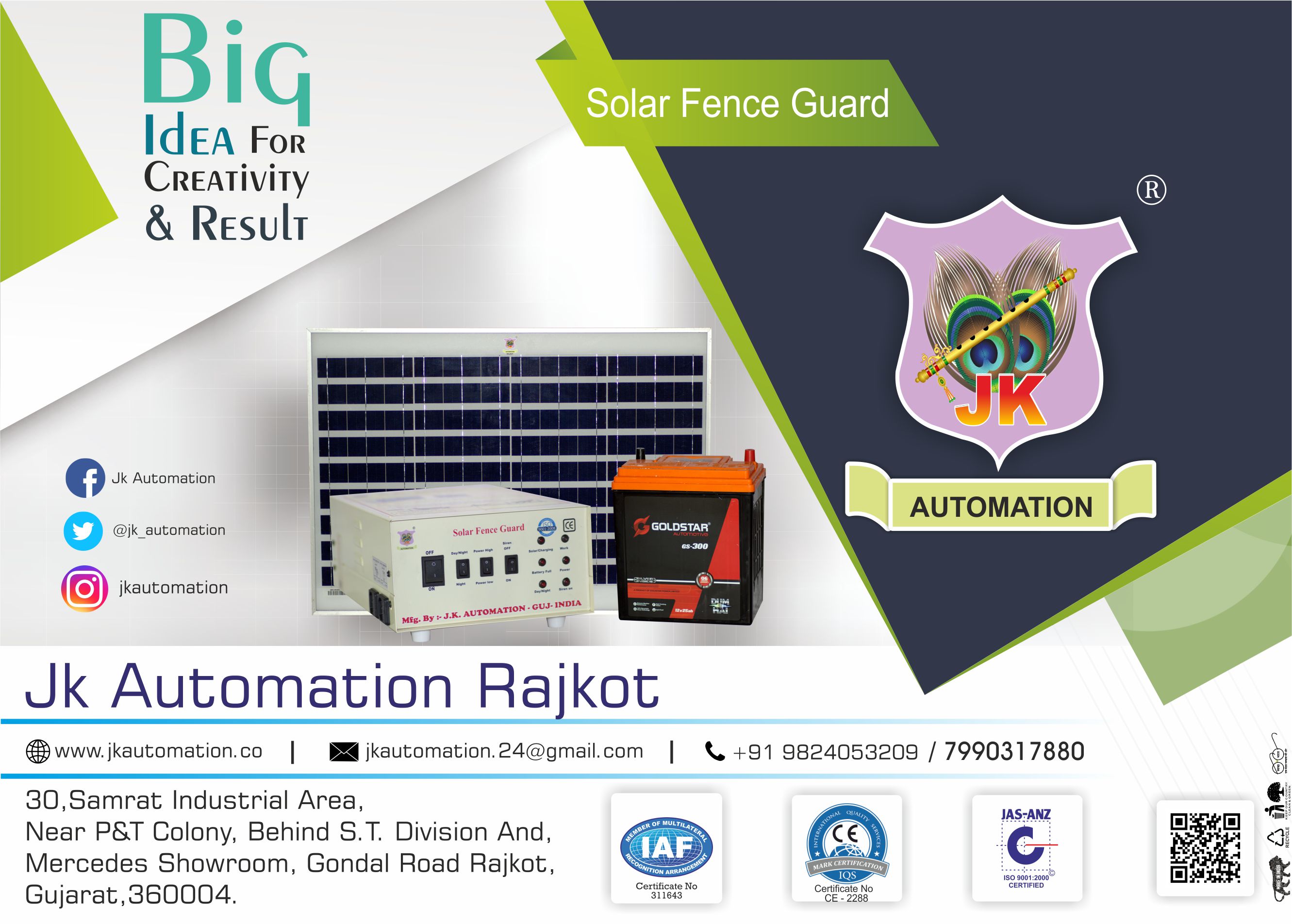 solar fence guard manu Jk Automation Rajkot Jk Automation compny in Rajkot. JK Automation is AN ISO 9001:2008 Certified Company and CE certified company We are Leading Manufacturers of Solar France Guard, ELCB+MCB, Auto Starter, Auto Timer Switch, Electronics Power Dever Tectifier, Security Syatem in Rajkot -Gujarat-india. www.jkautomation.co www.jkautomationpvtltd.com https://www.facebook.com/jkautomationrajkot/?eid=ARAqupIZ-ZjmJ7qX6yIzmeFAP8uqFLWKEvs_366QWVvre0-3ATKJ8qTrx8ElUeea4QP5meYYnkcBeukr https://www.instagram.com/jkautomation/ https://www.google.com/maps/dir//jk+automation+rajkot/data=!4m6!4m5!1m1!4e2!1m2!1m1!1s0x3959ca88441668e7:0xf818b5a181f1dc0e?ved=2ahUKEwiM65K2s_zfAhWWb30KHSaYBPUQ9RcwEHoECAUQDg https://www.google.com/search?rlz=1C1GCEB_enIN831IN831& biw=1280& bih=727& tbm=isch& sa=1& ei=qW9EXLSpKMGy9QPf3pPgBg& q=jk+automation+rajkot& oq=jk+automation& gs_l=img.1.0.35i39l2j0i24l5.76836.86551..88367...2.0..4.198.2703.0j20......2....1..gws-wiz-img.....0..0i67j0j0i10j0i8i30j0i30j0i10i24.U-M--6ovVJA#imgrc=hM9MZtncKbI5xM: http://www.jkautomation.co/products/solar-fence-guard-/11 http://www.jkautomation.co/products/solar-fence-guard/13 https://www.indiamart.com/j-k-automation-rajkot/products.html